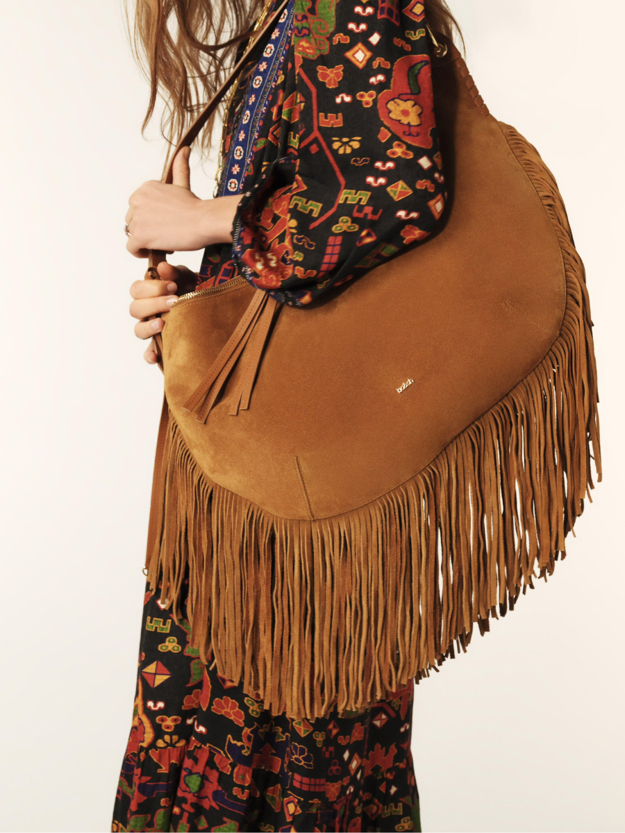 תיק כתף מרשים בגזרה גדולה, עשוי זמש רך ואיכותי בעבודת יד איטלקית מוקפדת. כולל רוכסן דו-כיווני לסגירה נוחה, רצועת כתף מתכווננת, ותא פנימי עם רוכסן לאחסון בטוח. מגיע עם שק בד ייעודי לשמירה והגנה.